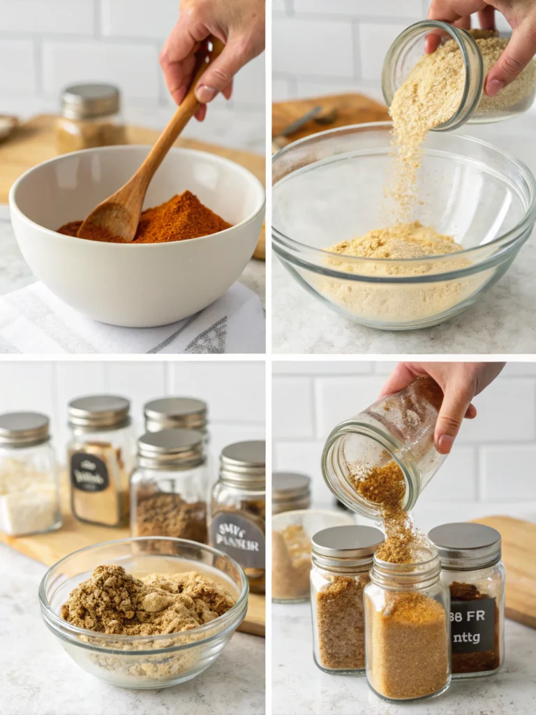 Transfer to airtight glass containers or small mason jars. Label with contents and date. Properly stored homemade seasoning blends maintain peak flavor for 12-18 months – significantly longer than most people realize.
