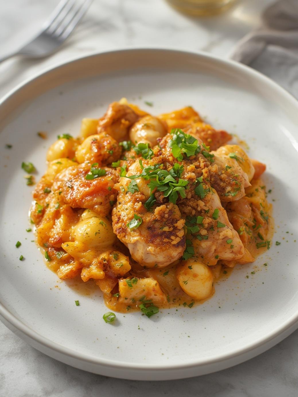 6. Finish and serve: Let the Million Dollar Chicken Casserole rest for 5 minutes before serving. Garnish with fresh parsley.